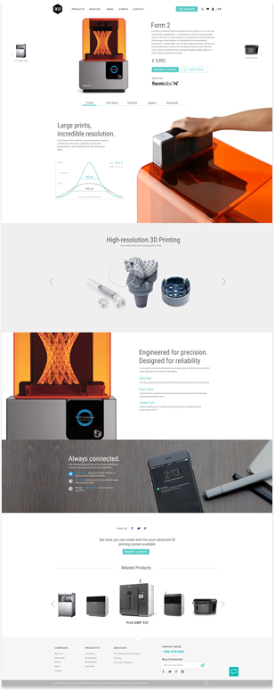 3DZ is a well established Italian company based in Malta selling 3D printers and services. We collaborated with them on a full rebrand and the development of their e-commerce site. We made the bold decision to switch from black to white to emphasize the modern, innovative tech 3DZ represent. We added an image carousel to spotlight their printers in a wide variety of uses. To emphasize the strong growth 3DZ is powering, we added a map of their global reach and made the site multilingual. We built individual pages for every product in their catalogue and made sure that bold design comes through on every one. Extremely proud to start 2018 with such an amazing project.